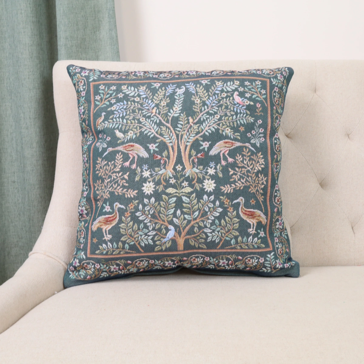 Dvipusė gobeleno pagalvėlė – William Morris Rojus žemėje (žalia)