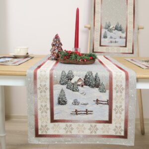 Stalo takelis iš gobeleno medžiagos. Gobelenas yra tankus žakardo audinys. Pagrindas yra sudarytas iš medvilnės, audimo siūlai – mišrios sudėties (poliesterio ir akrilo)